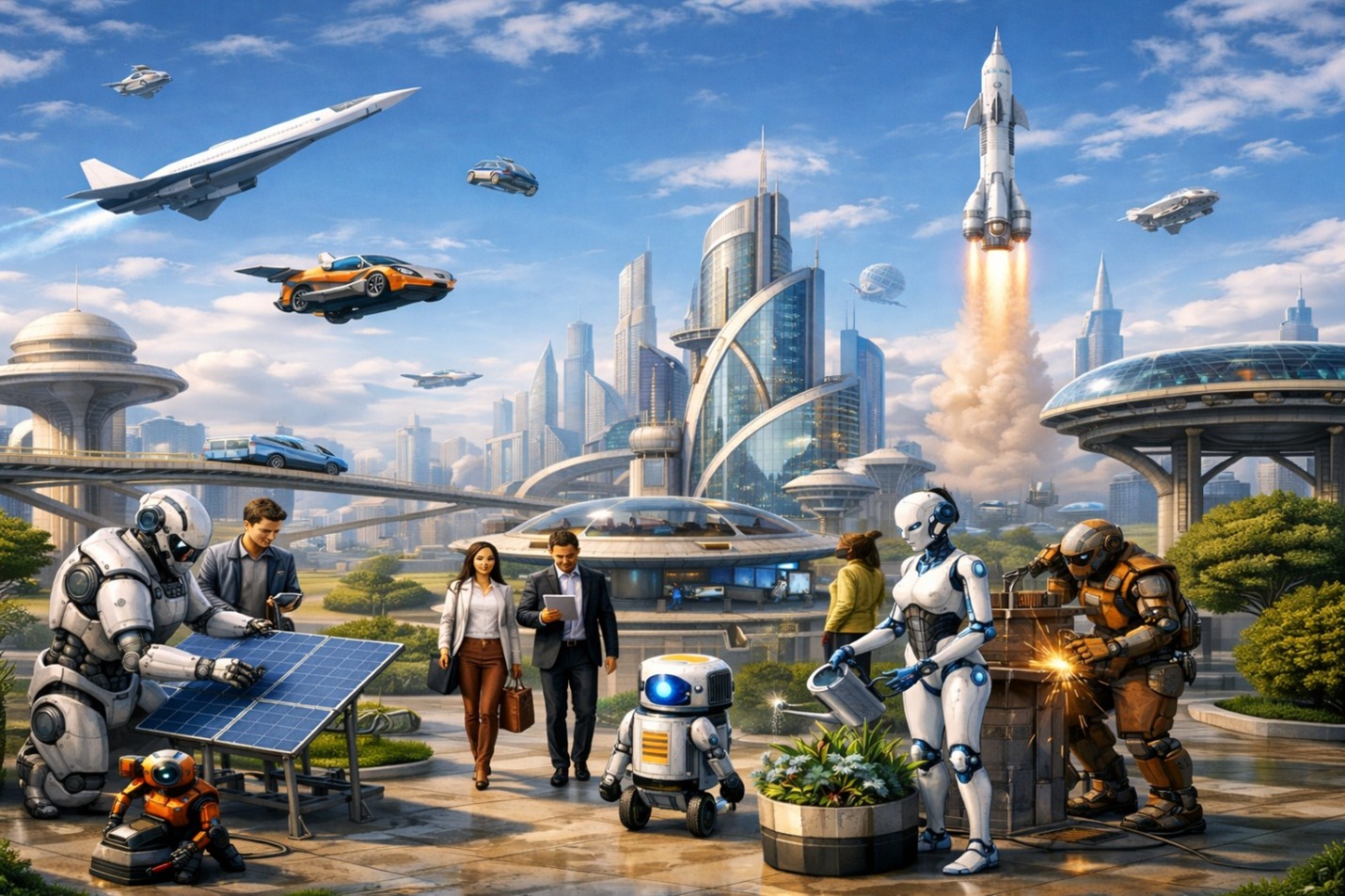- There will likely be permanent outposts on the Moon and Mars, and space travel will be common;